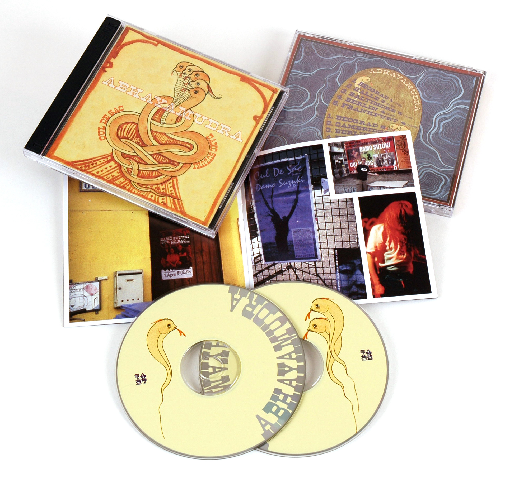 Packaging for the album Abhayamudra, by Cul de Sac and Damo Suzuki, on Strange Attractors Audio House.